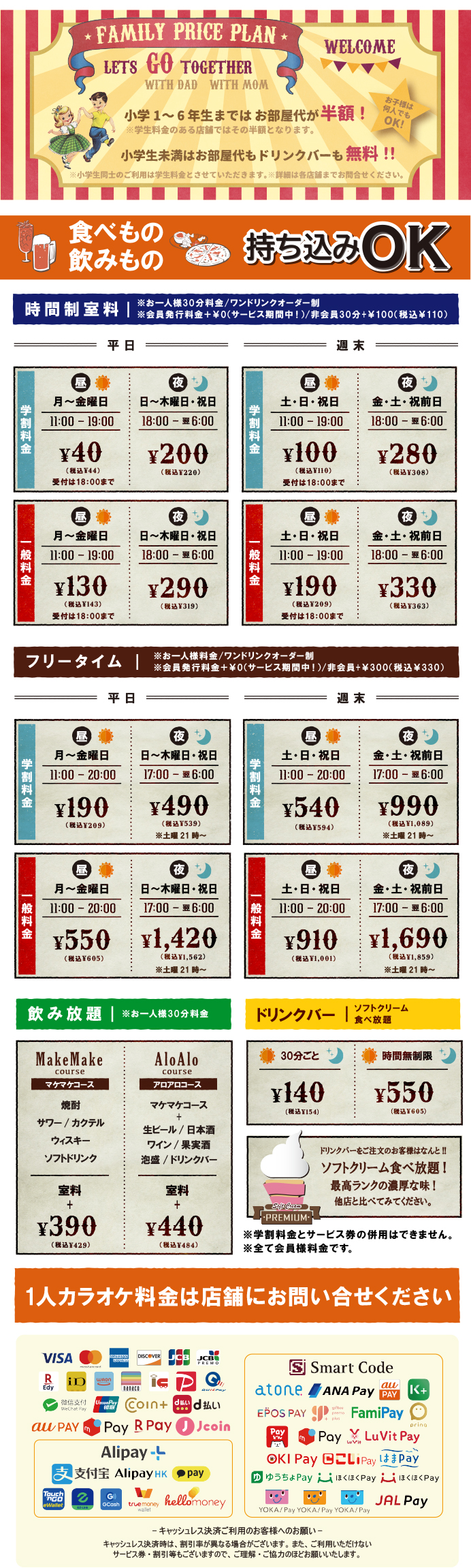 □キャンペーン料金、飲み放題料金には適用されません。