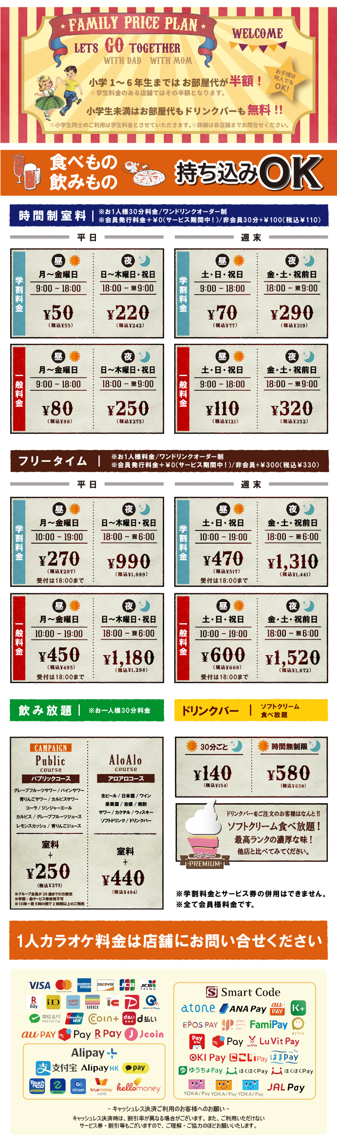 □キャンペーン料金、飲み放題料金には適用されません。