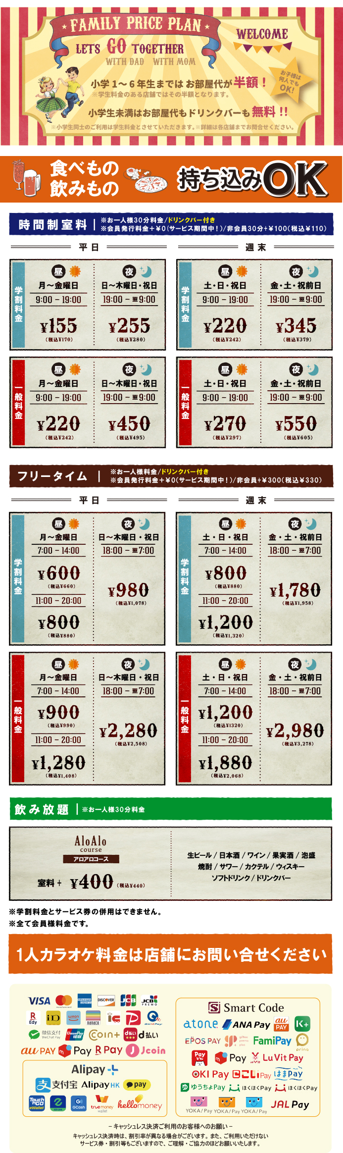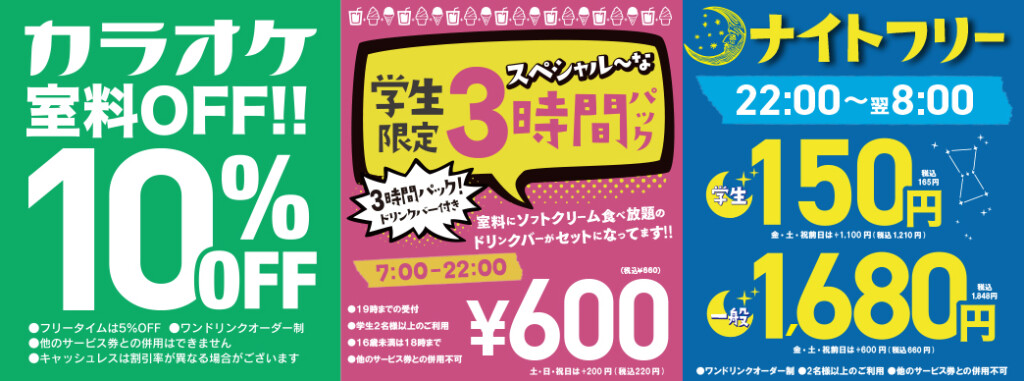 □キャンペーン料金、飲み放題料金には適用されません。