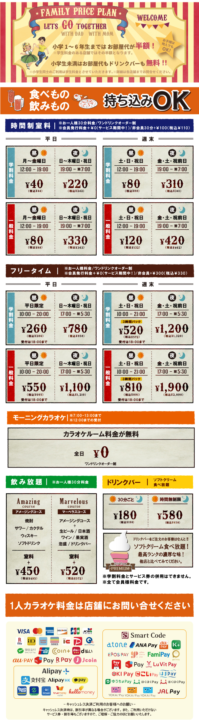 □キャンペーン料金、飲み放題料金には適用されません。