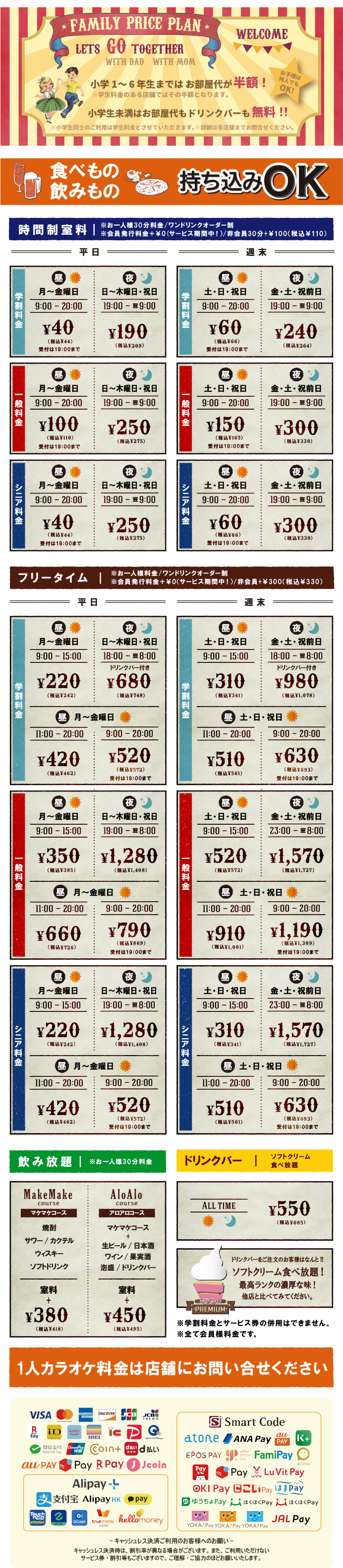 □キャンペーン料金、飲み放題料金には適用されません。
